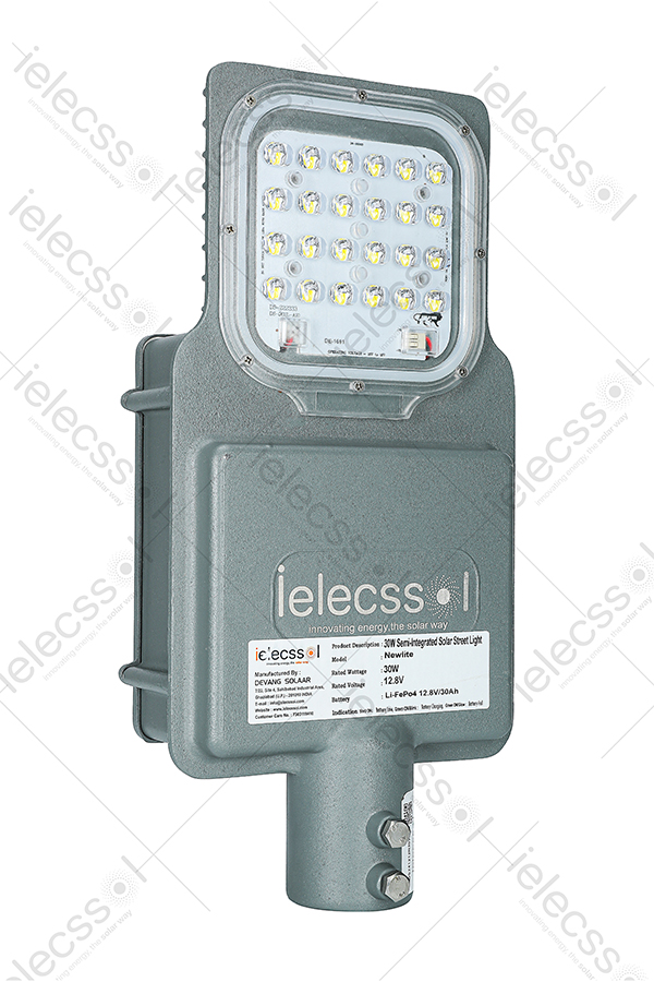 The Semi-Integrated Model Newlite Solar Street Light (9W–50W) is a two-piece system in which the LED luminaire and solar panel are mounted adjacently on the pole.This configuration allows the solar panel to be tilted independently from the light fixture, ensuring optimal orientation toward the sun—a feature especially valuable in diverse conditions across India.